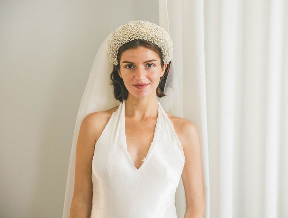 I wore this fabulous headband from Happy Isles. My cornucopic wreath of pearls. I love it and treasure it in a little silk pouch in my closet.