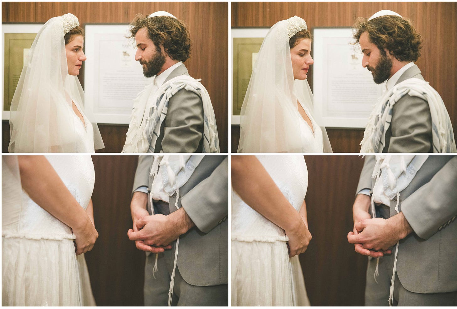 In a Jewish wedding , there is a ketubah signing before the ceremony. The family and close friends of the bride and groom huddle in one room with the Rabbi(s). There are blessings and a witness signs the marriage contract (ketubah). It’s usually very emotional as it’s a pretty solemn affair and the words and affirmations spoken are binding and strict. For life, to life!