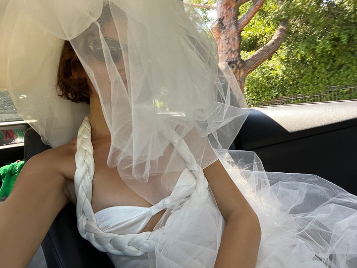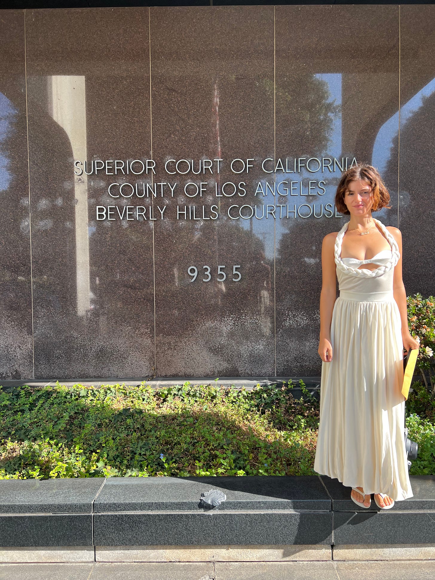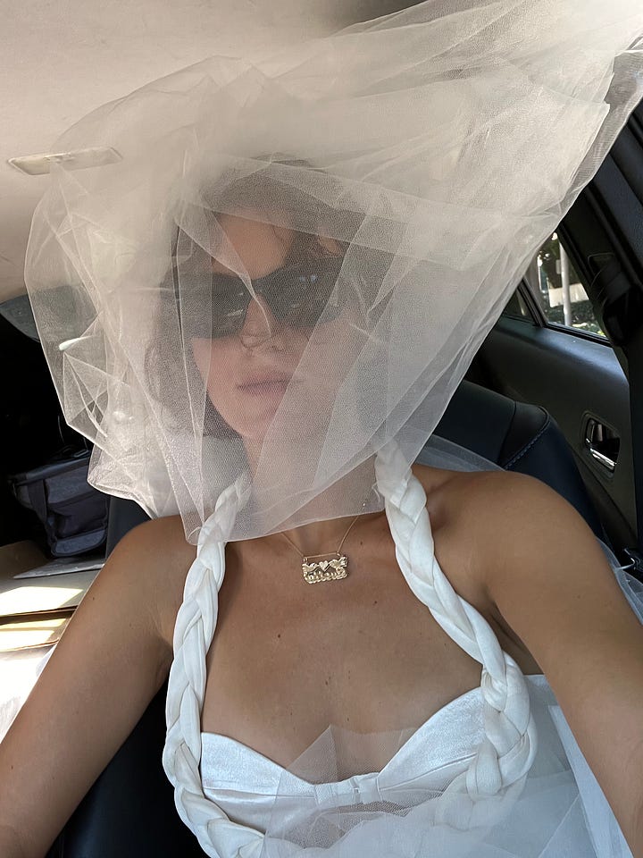 We first got married at Beverly Hills City Hall. I wore a dress by Bevza and our dog Pluto was there. We have three polaroids from the civil ceremony which will remain private and encase in a manila envelope with our marriage certificate.